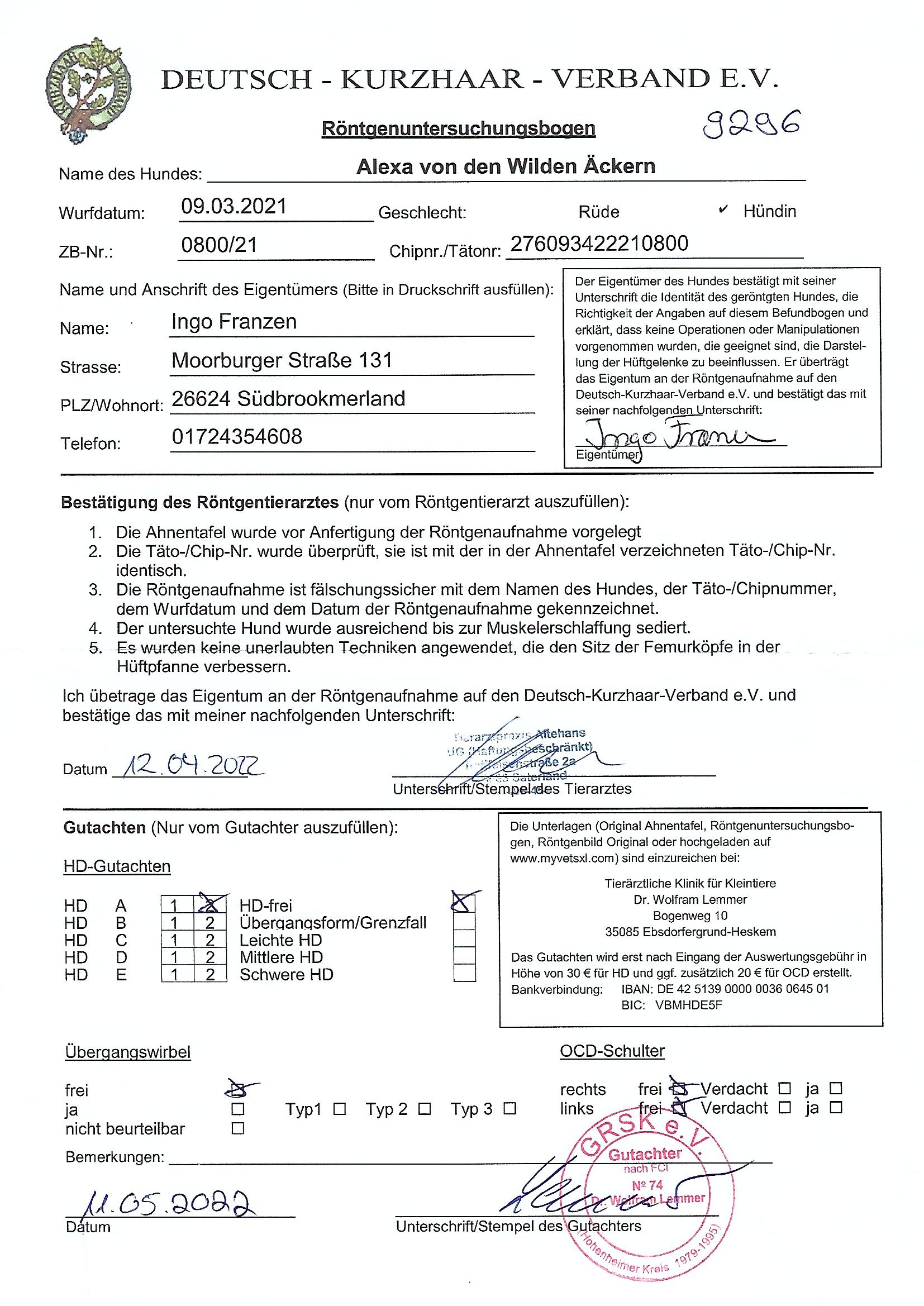 Alexa von den Wilden Äckern Armbruster-Haltabzeichen ( AH ) vom 02.04.2022